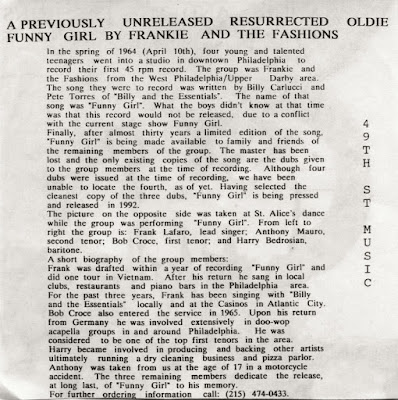 Very rare insert of the 45 rpm made in 1992 for 49th St. records with the song "Funny Girl".